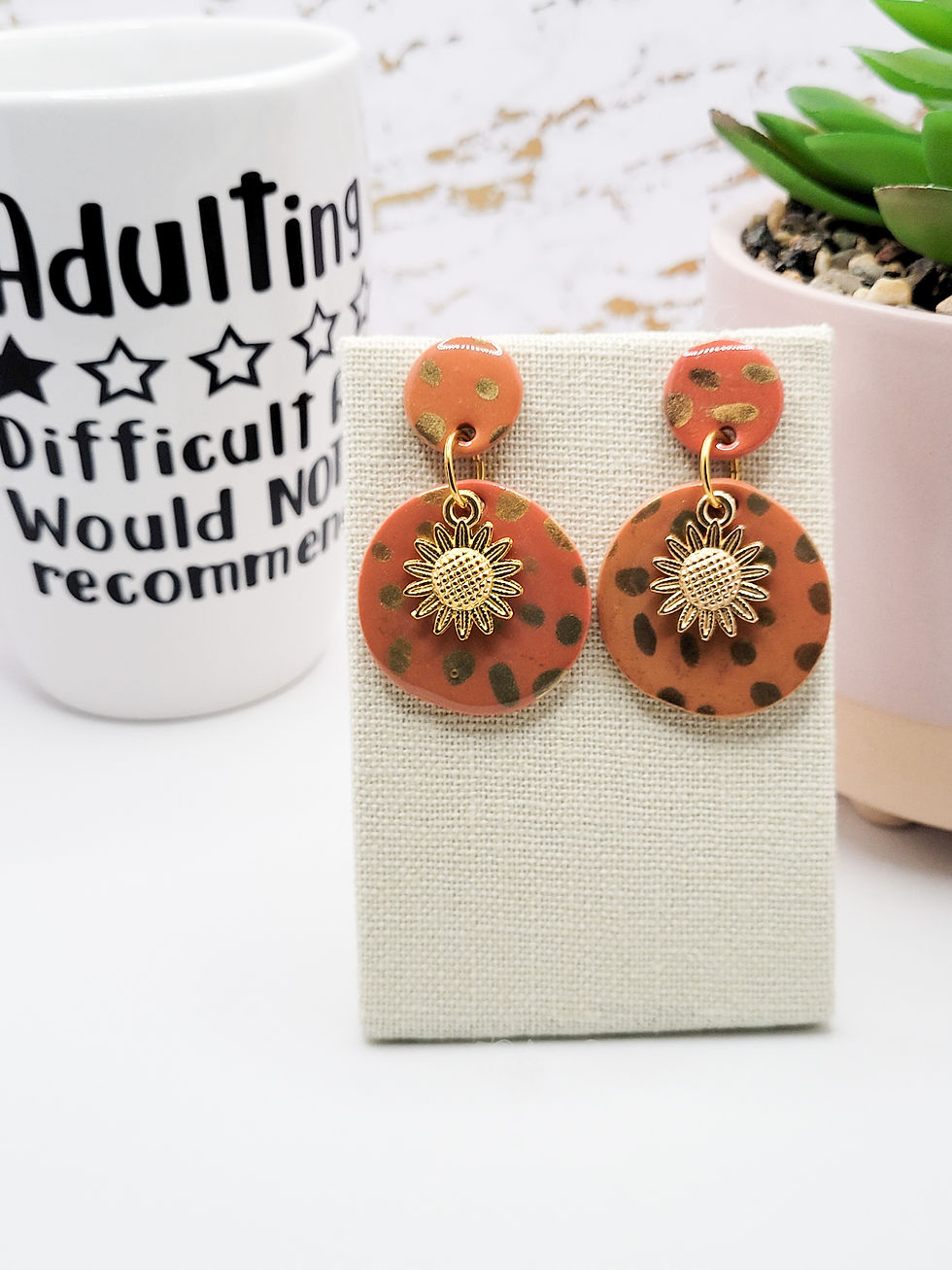 Light Blush and Rose Gold Round Resin Dangle Earrings