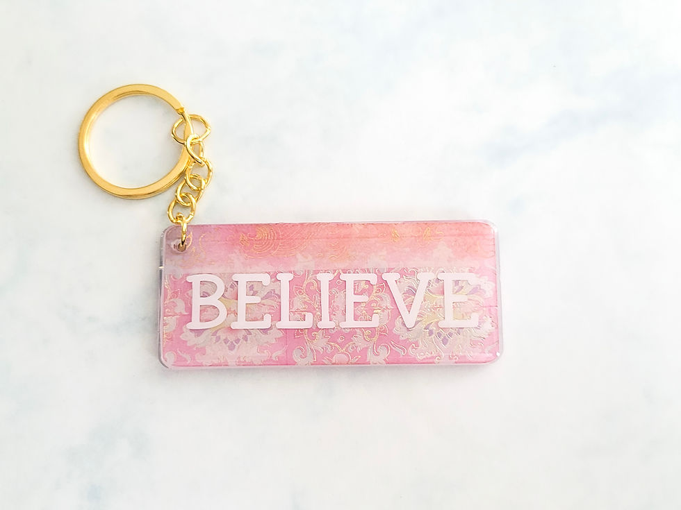 Believe Keyring, Pink and White